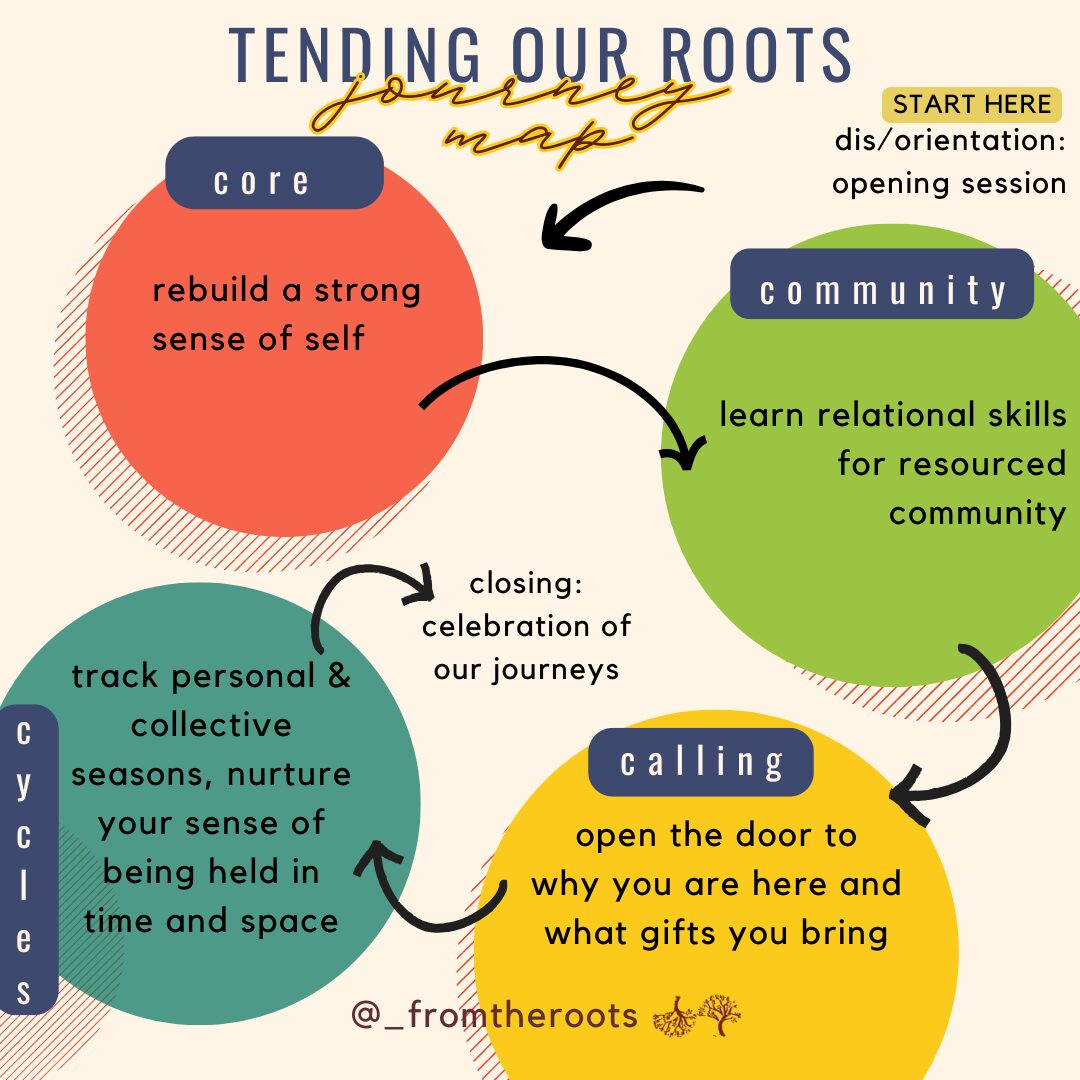It is a deep dive into the 4 roots of the fromtheroots framework, teaching us tools, practices and frameworks that will deepen our sense of being held in and able to navigate from our being (core), our belonging (community), our sense of purpose (calling) and where we are in time and space (cycles).